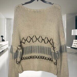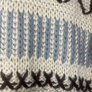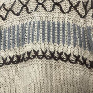 Cozy meets chic with this Blue B Collection chunky knit sweater in size Large. The creamy base is accented with soft light blue and dark brown stitched detailing, giving it that perfect mix of neutral and unique. Made of 100% acrylic, it’s lightweight yet warm and soft—easy to throw on for a casual day out, cozy coffee shop vibes, or layering up for chilly evenings.