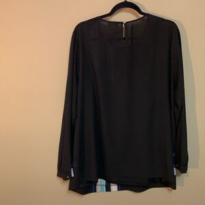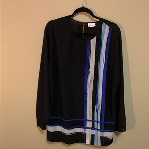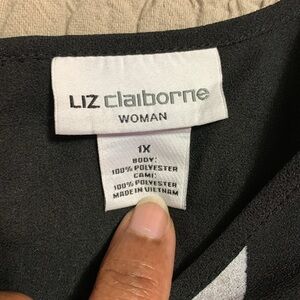 Liz Claiborne Women’s Abstract Black/Blue Size XL Blouse Office Artsy