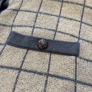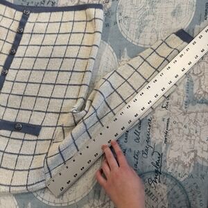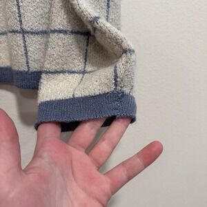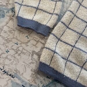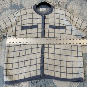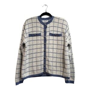 VTG! Alfred Dunner Blue White Plaid Preppy Button Up Knit Cardigan L USA 80s