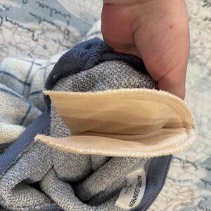 Stitched cuff, normal fabric pilling and wear, smaller in size- see pictures!