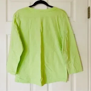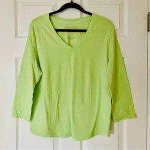 EUC Faded Glory Women’s Lime Green V-Neck Top | 3/4 Sleeves