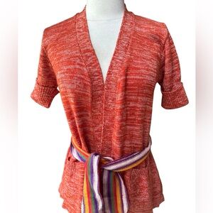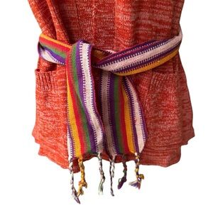 1960s A Fashion Import Acrylic/Poly Blend Open Cardigan w/Matching Belt in excellent used condition. Measurements: bust 36”/length 26.5”