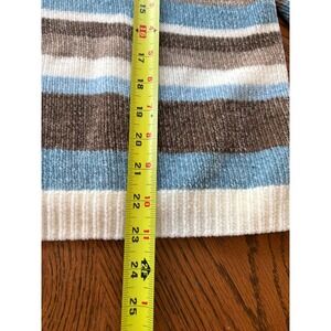 Alfred Dunner Womens Chenille Striped Floral Embroidered Mock Neck Zip Sweater L