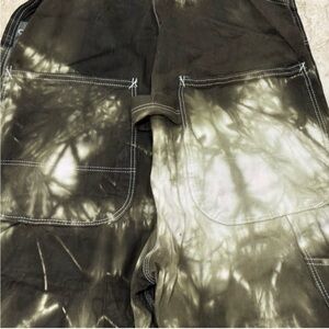 Dickies Olive Green Tie-Dye Bib Overalls with Gray Straps