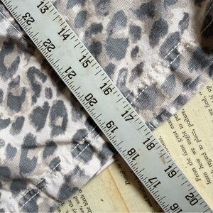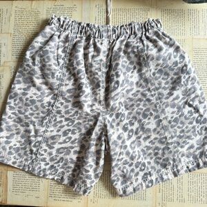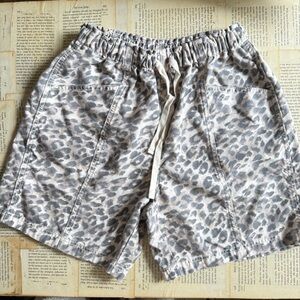 Aerie women's casual shorts with a subtle leopard print. Elastic drawstring waist for adjustable fit. Two front pockets for essentials. Soft, lightweight fabric for everyday comfort. Neutral gray and cream tones for versatile styling.