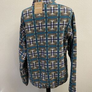 Patagonia Teal Blue White Brown Geometric Snap Fleece Pullover