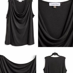 Calvin Klein blouse 1X plus size black top cowl neck blouse flowy blouse women work blouse plus size elegant black top sleeveless dressy blouse