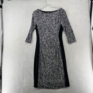 Lauren Ralph Lauren Dress Sheath Black White Career 3/4 Sleeve Size 6
