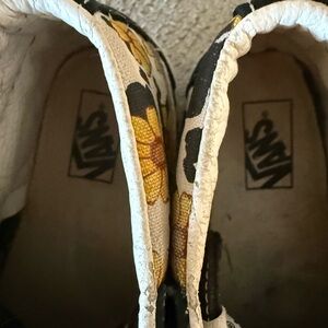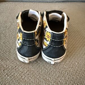 Charming high-top sneakers with sunflower pattern. Easy velcro straps. Comfortable and stylish for kids. Used but still have a lot of life left.