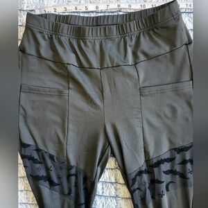 Stylish leggings with black bat pattern in sheer windows. Comfortable fit. Perfect for casual wear.