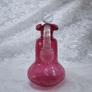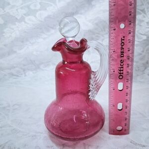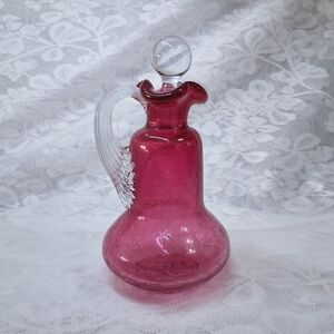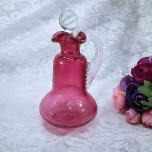 Vintage Gibson Rose Crackle Glass Cruet Pitcher With Stopper