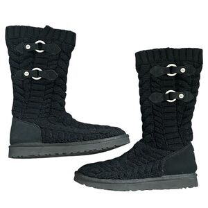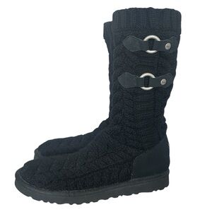Y2K “UGG Australia” Black Cable Knit Boots with Buckle Style Detailing