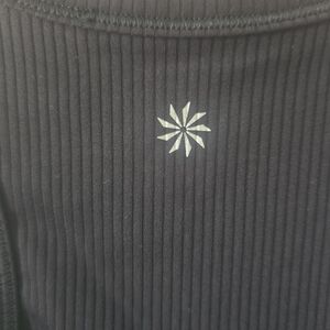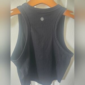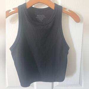 Sleek ribbed tank with a high neckline. Stretchy fabric for comfortable movement. Minimal, versatile design for layering or solo wear. Easy-care material that moves with you. Gently used condition. Please check out my closet for more fun finds!