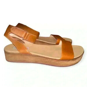 Steve Madden Women's Gaiya Cognac boho chic leather Platform Sandals size 8.5M