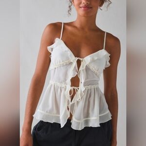 Kimchi Blue White Ruffle Flyaway Tie-Front Cami