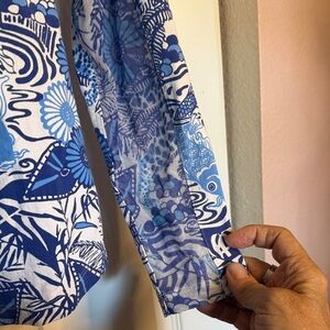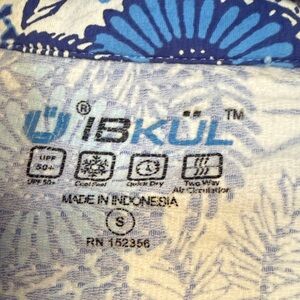IBKUL fabric with blue and white floral pattern. Features cooling and quick-dry technology. Mesh inner arm. No stains or imperfections
