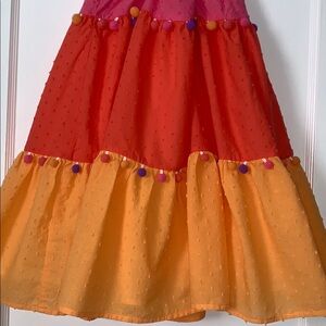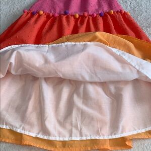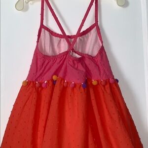 Adorable, pink and orange pom-pom sundress for your little one! Shoulder straps have two buttons for adjustment. In excellent, clean condition!