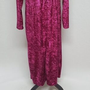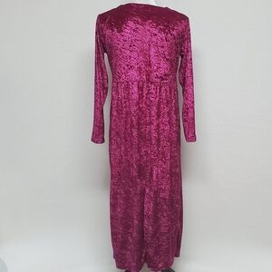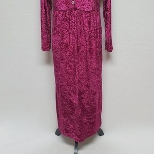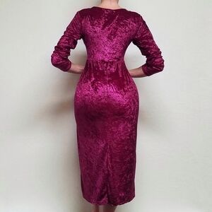 80s Vintage Cervelle Burgundy Crushed Velvet Regencycore Long Sleeve Midi Dress