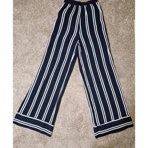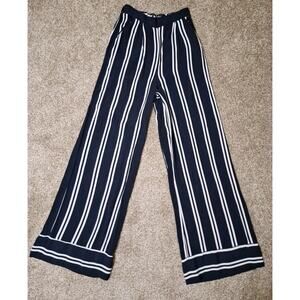 Lulus Womens Blue White Striped Elastic Waist Wide-Leg Pants Size Small Pockets