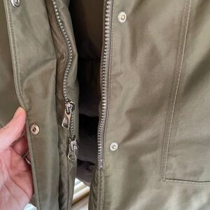 Like new condition The North Face woman's winter jacket. Double front zipper, detachable hood, size small. Absolutely loved this jacket but it’s too small for me now. No rips or tears, all zippers work, nice olive green color.