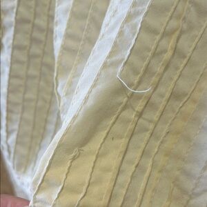 One lose thread on the front. See all pics. The thread is just part of the design. It’s not holding anything together.