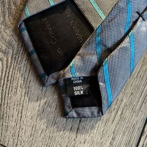 Calvin Klein Elegant Striped Blue and Gray Tie