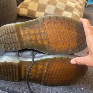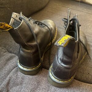 Dr. Martens Black Leather Lace-Up Ankle Boots with Yellow Stitching