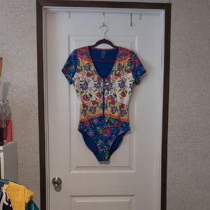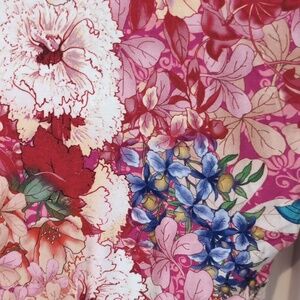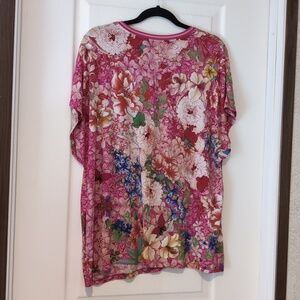 Rayon/span tee, lightweight and perfect for summer! Deep pink background with gorgeous floral print.