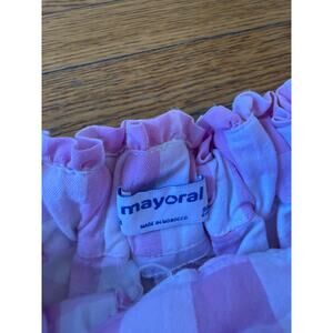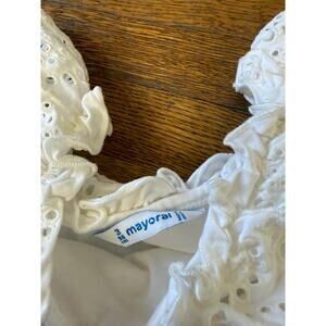 Mayoral girls' eyelet blouse and gingham shorts outfit.
