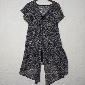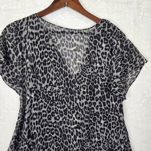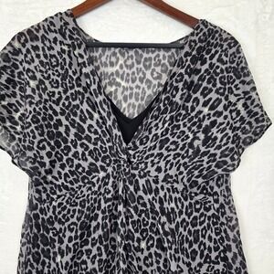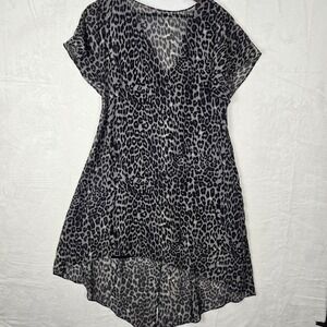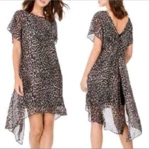 Adrianna Papell Dress Size Small Animal Print Chiffon Overlay Assymetric Short