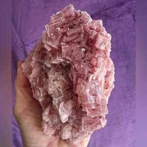 Pink Halite from Searles Lake, California, is a highly sought after, natural evaporate mineral prized for its deep pink to pastel cubic crystals. Formed in a harsh, high salinity desert environment, these salt crystals are delicate, hygroscopic, and often require dry storage to prevent dissolving. Public access is now restricted. This is a high-vibration crystal prized for emotional healing, self love, and intense purification. Associated with the heart chakra, it helps release deep-seated emotional strain, fosters compassion, and clears negative energy from the aura. These pink salt crystals are mined from dried, alkaline lake beds.