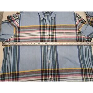 This Ralph Lauren Men's XL Long Sleeve Shirt in Indian Madras Plaid is a classic and breathable addition to any man's wardrobe. Made of comfortable cotton and featuring a traditional button-up design with a button-down collar, this shirt is perfect for all seasons including Winter, Fall, and Spring. The multicolor plaid pattern adds a touch of style, while its regular fit ensures comfort and a flattering silhouette. Whether you're dressing up for a special occasion or simply want to add a touch of sophistication to your casual look, this shirt is a timeless choice from the Polo Ralph Lauren Madras collection.
