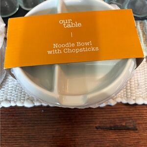Our Table Ceramic Noodle Bowl with Lid and sauce compartments new
