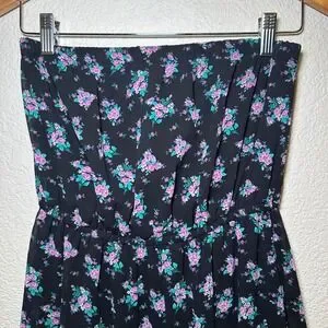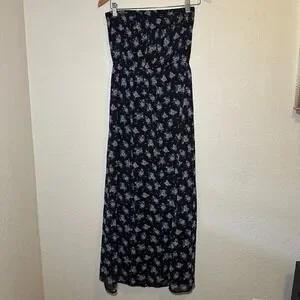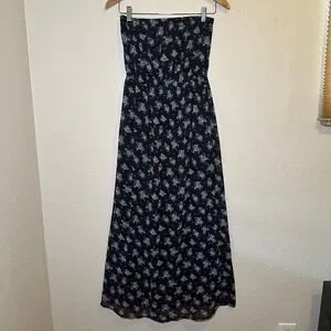 Forever 21 Size M Strapless Maxi Dress Black Floral Summer Bohemian Dark Romance