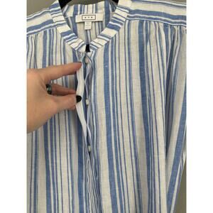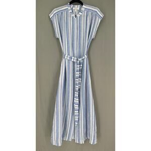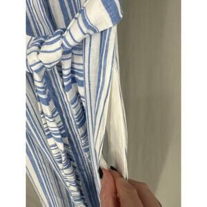 AYR Dress Womens XS Blue Striped Maxi Linen Button Tie Front Pockets Coastal