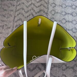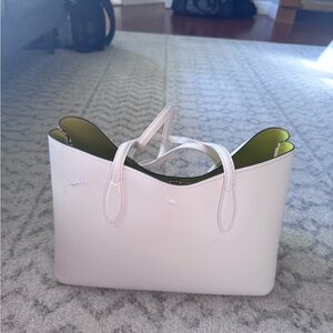 Genuine leather tote. Stored stuffed but it does slouch a little. Offers welcome!