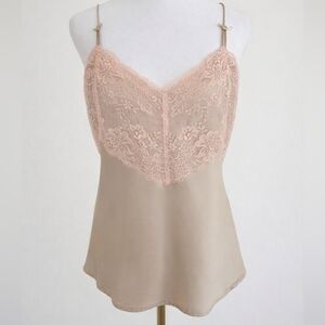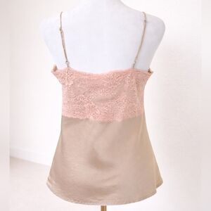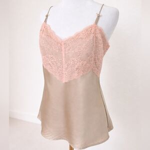 This GAP Body 100% silk cami features a soft champagne/nude base with delicate blush lace overlay, giving major coquette, balletcore, and vintage lingerie aesthetic vibes.