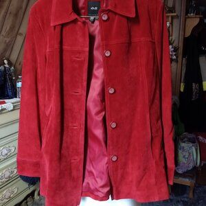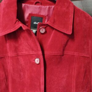 Elevate your style with this stunning red suede leather jacket. Near perfect condition. Label says large but defintiely fits more like a medium. I am a size 4.