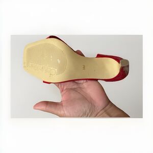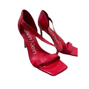 Step out in style with these stunning Calvin Klein red patent leather heels. Featuring a sleek strappy design and a modern square toe, these heels are perfect for nights out, special occasions, or elevating any outfit.