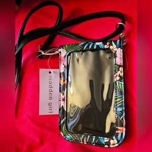 NWT Madden Girl cell phone crossbody bag in Beautiful tropical floral print w/ touch screen window & a detachable adjustable strap. Super fun