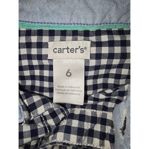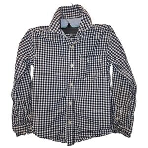 Carters Boys Navy Blue White Gingham Check Button Down Shirt Size 6 Long Sleeve