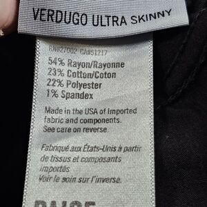 PAIGE Verdugo Black Ultra Skinny Jeans In 25