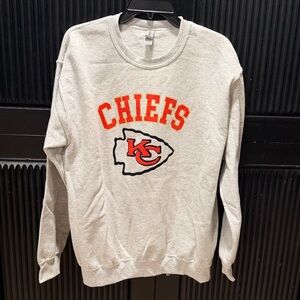 Gildan Gray Crewneck Sweatshirt with Red and Gold Kansas City Chiefs Logo
