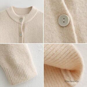 Cropped Cardigan Sweater Slim Fit Long Sleeve Button Down Knit Top