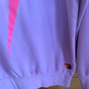 Aviator Nation Lavender Sweatshirt with Neon Pink Lightning Bolt