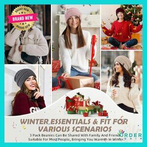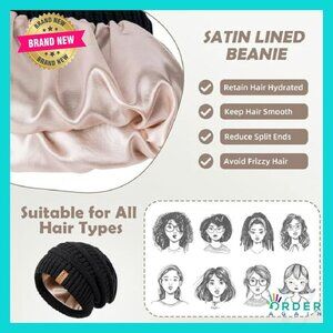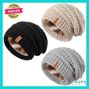 Brand new, never worn, and in flawless condition — this set of three satin-lined beanies offers cozy warmth and stylish protection for your hair, perfect for everyday wear, outdoor adventures, or as a thoughtful gift.