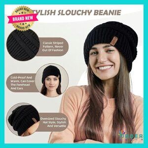 Satin Lined Slouchy Beanie Set Classic Oversized Winter Hat Chic