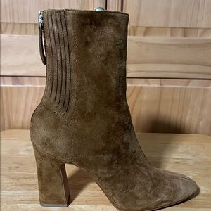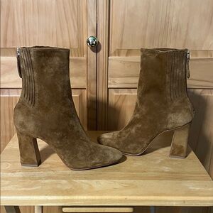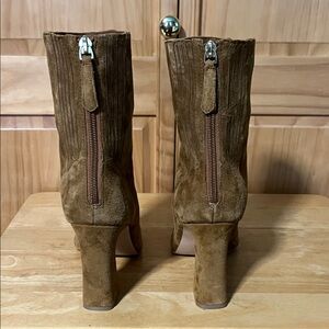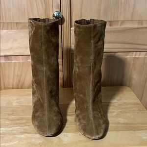 Elegant tan suede boots with a sleek design. Perfect for elevating any outfit.