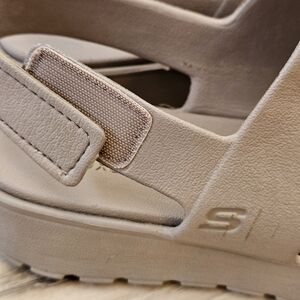 Enjoy the sun in all-day comfort with Skechers Foamies: Arch footsteps- Day Dream. This platform sandals features a sculpted foamers upper with ankle strap & an Arch Fit Cushioned footbed !