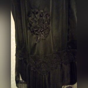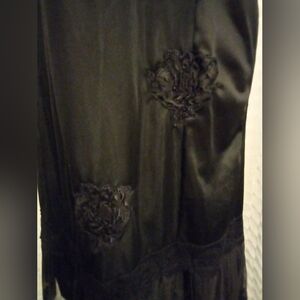 Very pretty vintage ladies slip tag has been removed. Measures approx 39 inches in length bust at 34, waist at 39 and hips at 32. I would say it is a size S. Beautiful lace and trim edging.